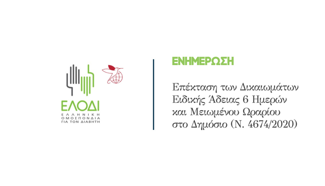 Με τις διατάξεις της παρ. 9α του άρθρου 47 του Ν. 4674/2020 αντικαθίσταται η παρ. 4 του άρθρου 16 του Ν. 2527/1997 και προβλέπεται πλέον ότι το μειωμένο ωράριο κατά μία (1) ώρα την ημέρα δικαιούνται οι μόνιμοι υπάλληλοι και οι υπάλληλοι με σχέση εργασίας ΙΔΑΧ και ΙΔΟΧ που έχουν παιδιά έως 18 ετών που πάσχουν από σακχαρώδη διαβήτη ινσουλινοεξαρτώμενο ή τύπου 1 με ποσοστό αναπηρίας 50% και άνω, αντί της ηλικίας των 15 ετών που ίσχυε μέχρι σήμερα.