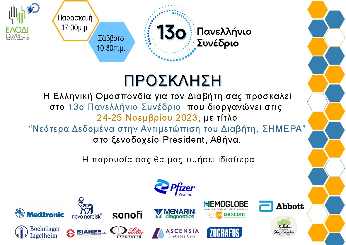 Πρόσκληση στο 13ο Πανελλήνιο Συνέδριο της Ελληνικής Ομοσπονδίας για τον Διαβήτη