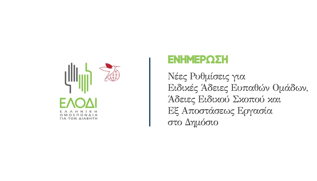 Το Υπουργείο Εσωτερικών με την υπ’ αρ. ΔΙΔΑΔ/Φ.69/120/12705/30-06-2020 Εγκύκλιο του επικαιροποιεί το καθεστώς σχετικά με τις ειδικές άδειες απουσίας των ευπαθών ομάδων στο Δημόσιο, τις άδειες ειδικού σκοπού για εργαζόμενους γονείς και το πλαίσιο παροχής εξ αποστάσεως εργασίας.